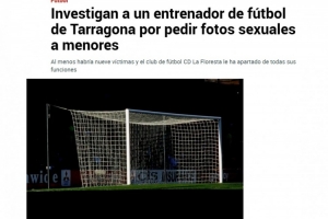 体育资讯4月8日讯 埃菲社报道,加泰罗尼亚警方正调查塔拉戈纳La Floresta俱乐部的一名教练,该教练涉嫌向俱乐部多名未成年球员索取色情照片。