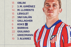 中场:朱利亚诺-西蒙尼、科克、巴勃罗-巴里奥斯、加拉格尔
