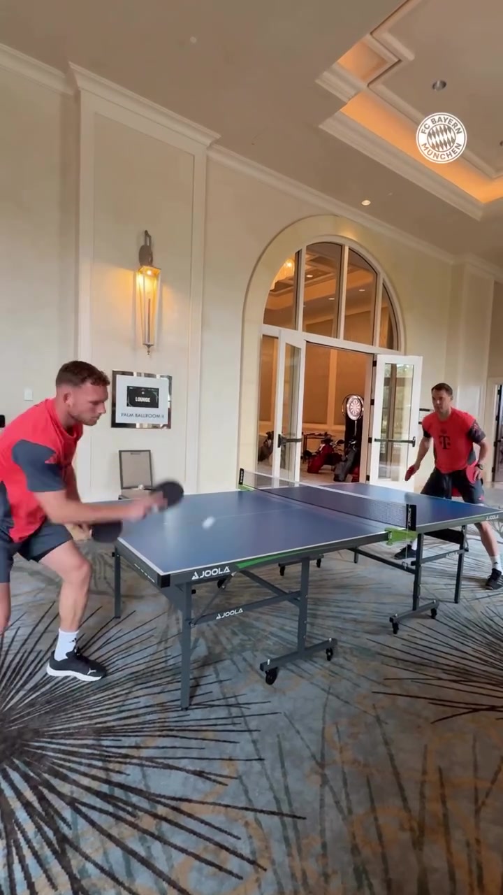 什么水平?拜仁社媒晒诺伊尔、佩雷茨打乒乓球视频